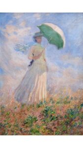 (Image:戸外の人物習作-日傘を持つ右向きの女 Femme à l’ombrelle tournée vers la droite (Study of a Figure Outdoors: Woman with a Parasol, facing right), Claude Monet, Public Domain.)